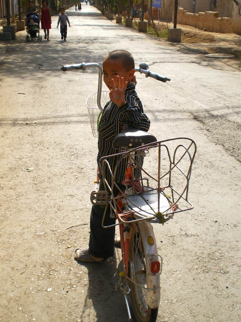 還要再走一小段路,在路上碰見幾個小孩,從這之後碰見的小孩開始比較有新疆的感覺。