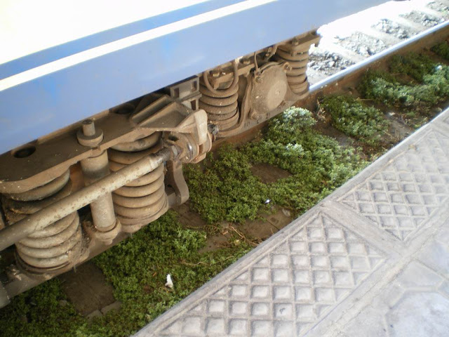 從火車剛下車,鐵軌上部份有長著雜草......感覺上是小站才會這樣。