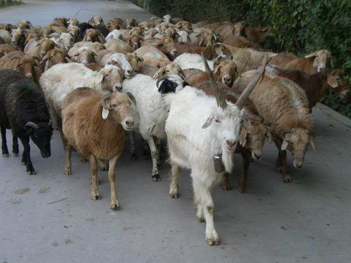 在離開的途中看見〝頭羊領群羊〞,那領頭羊的角.....真是帥氣兼高傲呀.....。