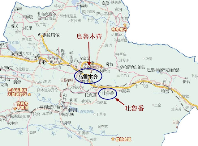 吐魯番的地理位置,在烏魯木齊跟哈密之間。