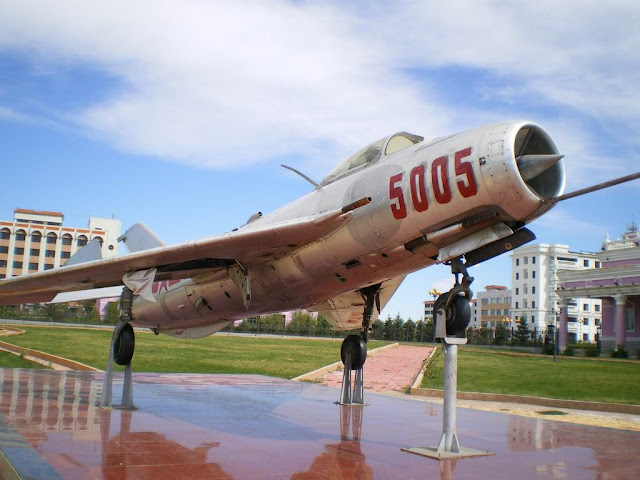 國門外面,先映入眼簾的是一個舊型的噴射機。