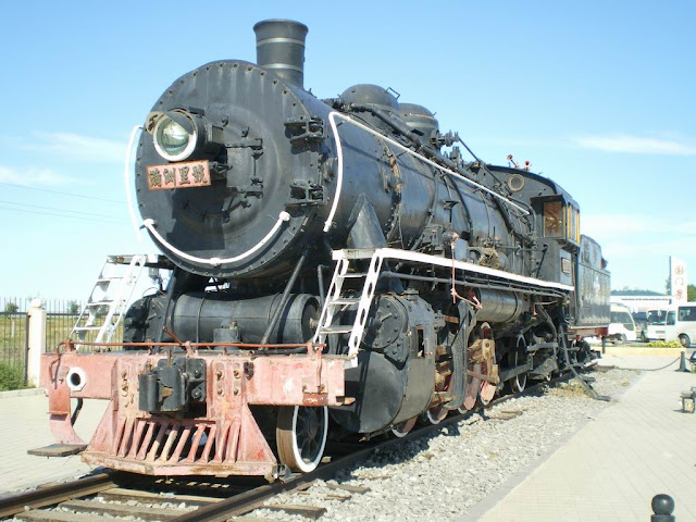 一輛舊的火車頭也成了展示品。