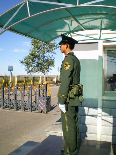 收門票的門口,由於這裡是中俄口岸,在這裡可以看得到許多武警在站崗。