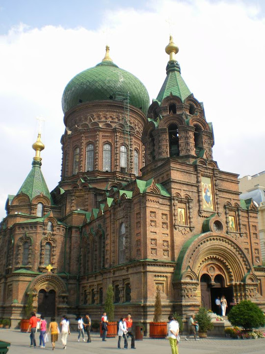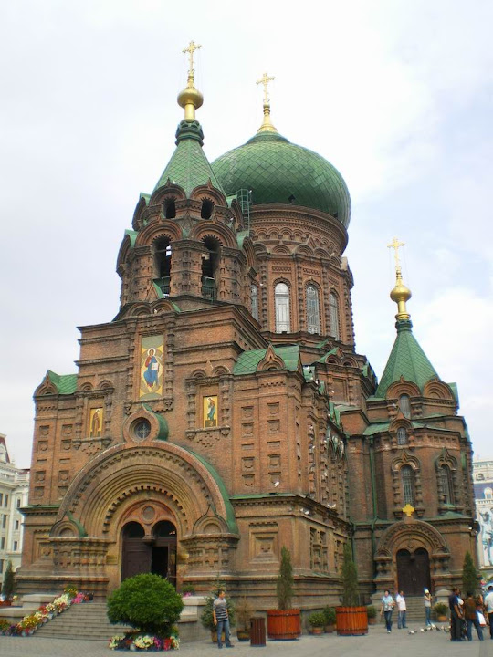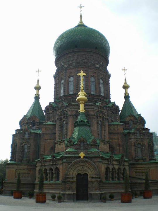 這座教堂始建於清朝的光緒年間(1907年),高53.35米,最開始的作用是東正教的神學院,是遠東地區最大的一座東正教教堂。