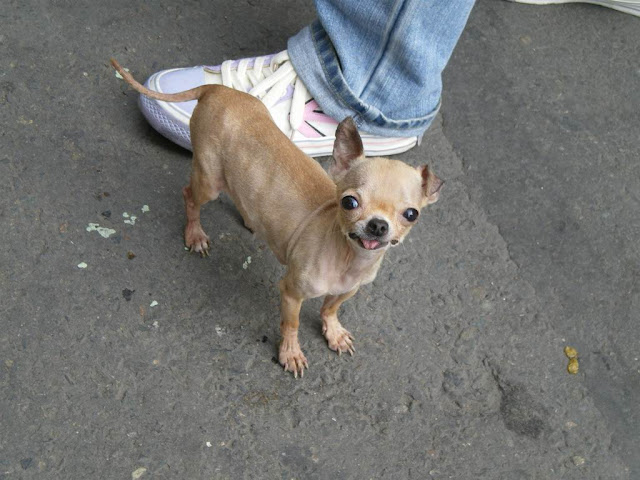 離開了大教堂,在路邊發現一隻非常逗趣的吉娃娃,一直繞著我轉,牠跟一隻鞋子差不多大而已。這隻狗叫〝妞妞〞,他的主人就是在旁邊的動物醫院工作的小妹,我忘了她是什麼原因養了這隻狗,不過妞妞確實很討人喜歡。