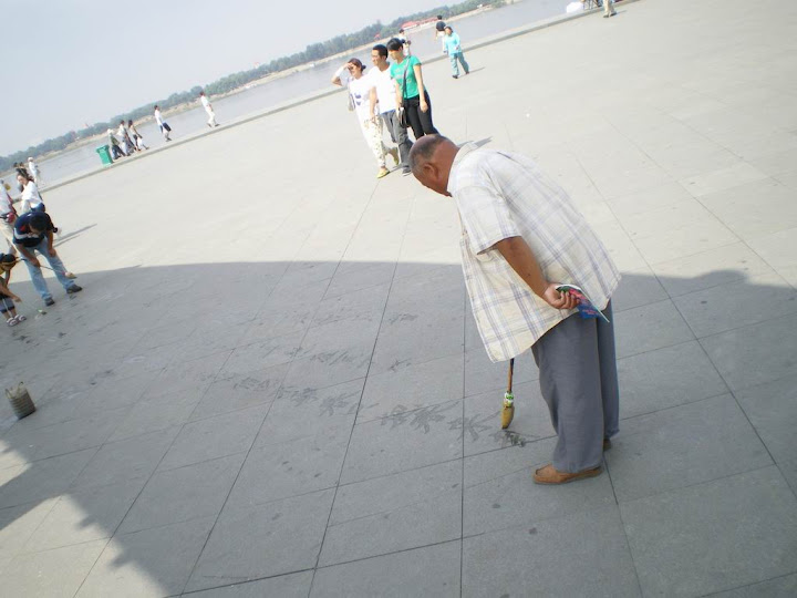 河堤上有人在練字,在中國蠻常看到的,但是在台灣卻看不太到這種景像。