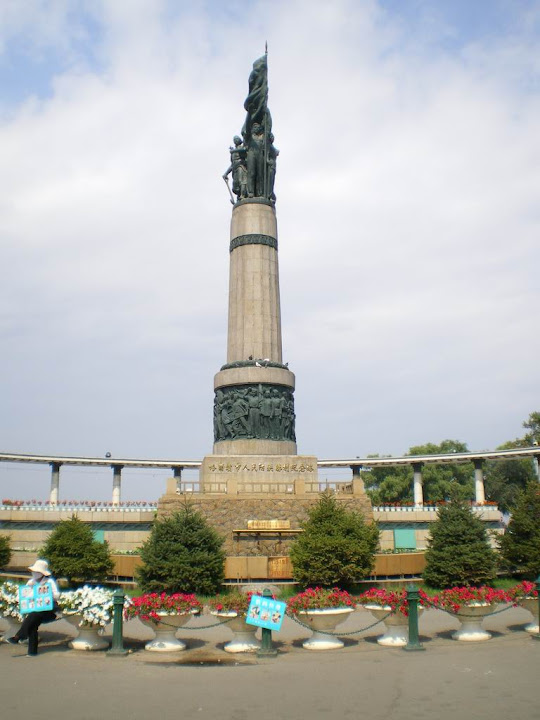 我離開住宿的大廈往中央大街的方向走去,我打算先到松花江畔,穿過兩個街道後,再往右邊下一個人行地下道,就可以看見立在江畔的〝防洪勝利紀念塔〞。