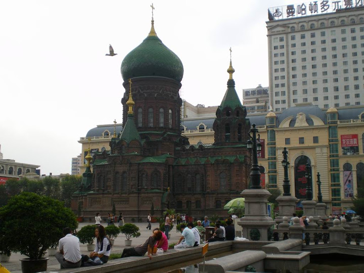因為有美麗的教堂,所以遊客充斥著廣場,這裡顯然是哈爾濱最醒目的一個地標了。