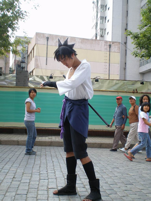 他扮演的角色是『火影忍者』中的〝佐助〞,不知道現場有幾位能跟我一樣辨認出來呢?