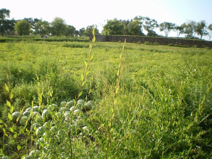 照片上的西瓜,別問我有沒有去偷採...旁邊有大娘在採收,只是沒入鏡而已,不過似乎只要給他一塊錢就可以給我一顆....。
