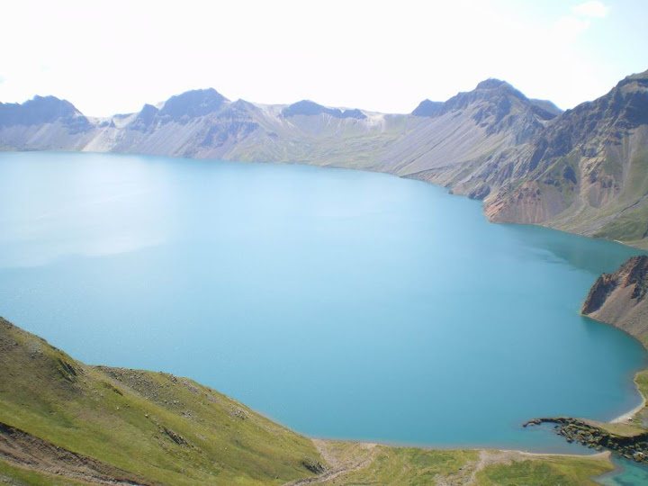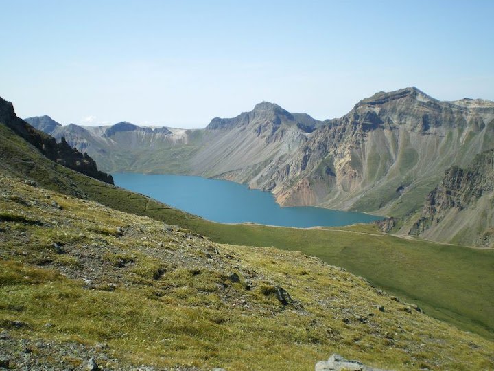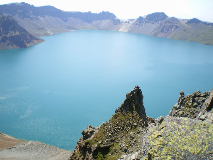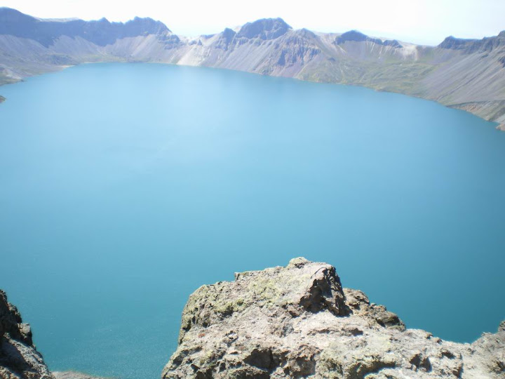 終於下到天池邊了,水自然是相當清澈的,感覺不到污染,加上有一點冷的空氣,天池的形象就油然而生了,這裡的天池真的很天池!!