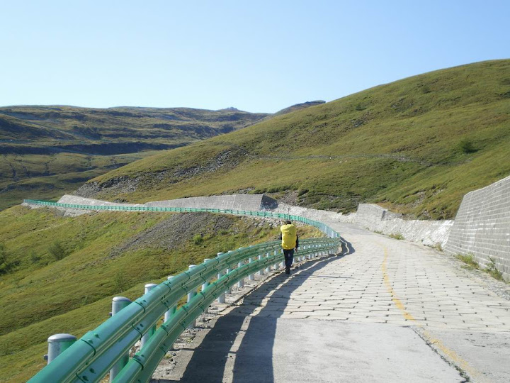 上了坡,看見馬路,放眼望去依然是彎延到底的馬路....orz...。