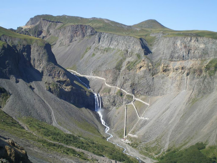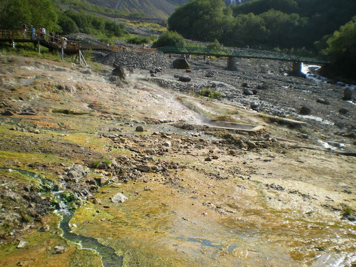 離開瀑布的路上,這黃色狀是因為這附近有溫泉。