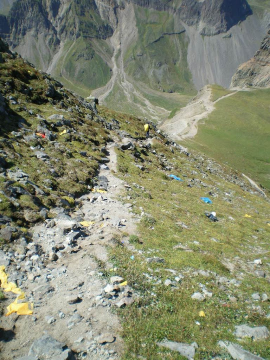 因為落石很多,所以下面拉起封鎖線不准上來,但是應該沒料到有人會下去。