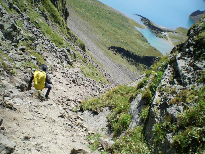 我們從山頂上下去一樣是到天池邊,就理論上是完全正確的,實際上想來倒是有點瘋狂....。路呢?沒有路吧?嗯....路...是人走出來的,這是阿池告訴我的。