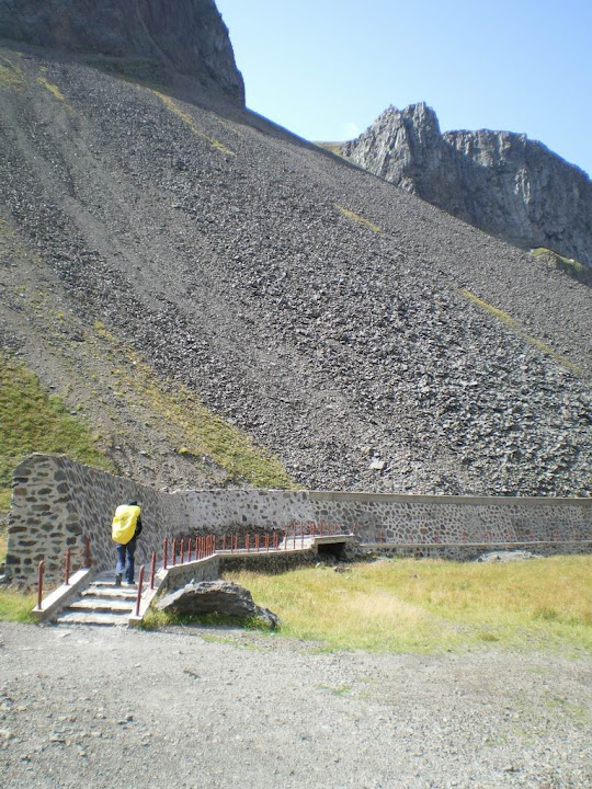 接著呢,10km的路程在等著我們,我們開始往前走,路途上一直有越野車不斷的送遊客上山,我們一開始很怕被發現,躲躲藏藏的,後來想想,被看到他又能怎麼樣呢?一輛車,載滿遊客,他能停車下來給我們警告嗎?還是要收我們的錢載我們上山?這些都不可能,所以,我們放膽的往上走,不管是什麼路,只要能縮短距離的路我們都走!