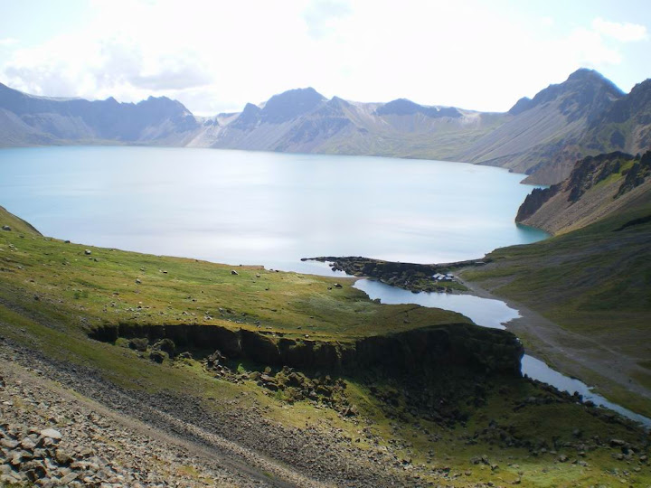 長白山的天池口就是一個火山口,上一次的大噴發大概是八百年前,而這八百年間也都有小規模的噴發,長白山的火山是陸陸續續都有在活動的,這裡的山壁是容易掉落石的那種。