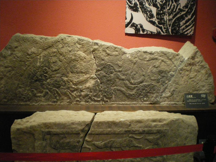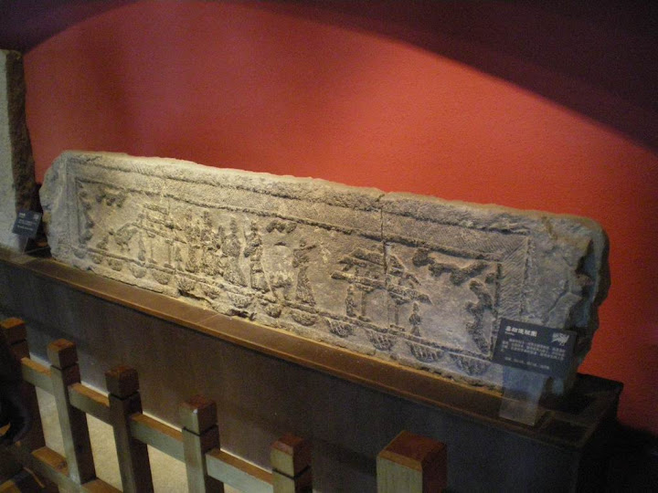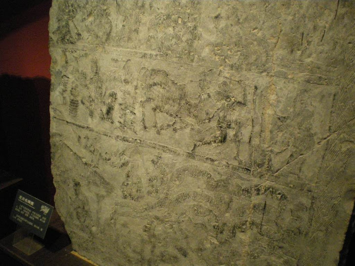 接著就到了漢畫像石的展廳,裡面收藏的都是各個漢墓裡牆壁上的畫像石,由於通常有研究價值,所以都會被拿下來作研究,在這裡就集中了許多。
