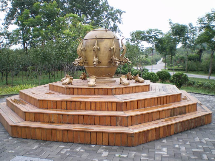 這是在某個花園放的候風地動儀的模型...地動儀的發明者是張衡,跟這個墓一點關係也沒有,只不過張衡是漢朝人...所以...冏...。