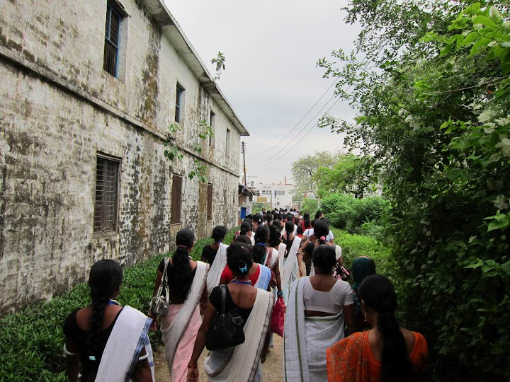 投捐獻箱時(留宿的奉獻),投了幾張大面額的,接著沒零錢了,還差幾百塊,於是到外頭想把大張的換開(不捨得是因為我還需要那些錢過到印度去...@@)。